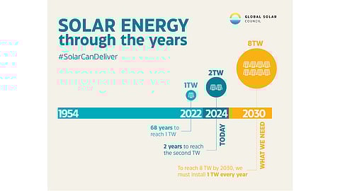 Having taken 68 years to reach the 1 TW milestone from 1954 to 2022, the global solar PV market took only 2 years (2022-2024) to achieve the next TW scale to achieve the 2 TW milestone, just days ahead of the 29th Conference of the Parties (COP29), according to the Global Solar Council (GSC) and SolarPower Europe (SPE).
