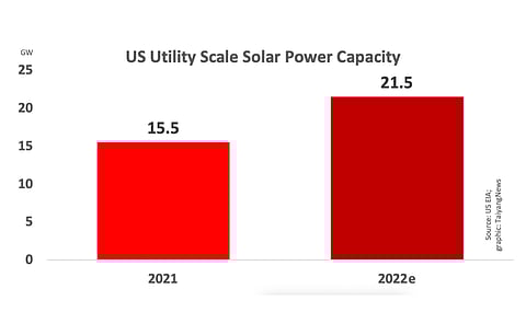 Solar will be the dominant source of electricity generation in the US in 2022, contributing 21.5 GW to the 46.1 GW of new utility scale electricity generation capacity the US Energy Information Administration (EIA) expects the country to add this year.