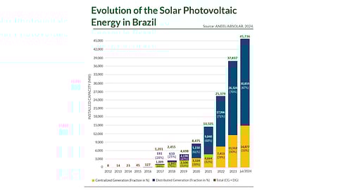 According to the Brazilian solar energy association ABSOLAR, Brazil’s cumulative operational solar PV capacity as of the end of August 2024 stood at 47.03 GW, comprising 15.086 GW of distributed and 31.94 GW of centralized generation projects.