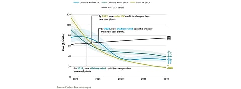 Among renewables, new solar PV capacity could be cheaper than new coal plants by as early as 2023, and by 2025, new solar PV could be cheaper than operating coal plants, claims the research.
