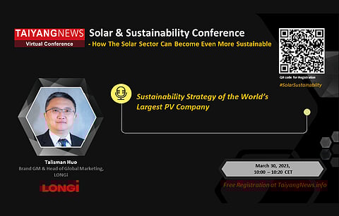 LONGi at TaiyangNews Solar & Sustainability Conference: Talisman Huo, Brand GM & Head of Global Marketing, LONGi will be participating in TaiyangNews's first Solar & Sustainability Virtual Conference on March 30, 2023. He will be addressing the topic: Sustainability Strategy of the World's Largest PV Company. As the solar industry grows rapidly and massive volumes of solar systems are being installed around the world, it is important that sustainability topics are not forgotten. While solar is sustainable in itself, it's still an industrial product, requires space, and has an end to its life. The Conference, which will take place from 9:30 – 13:15 CET, will take a look at solar and sustainability from various angles – including material suppliers, manufacturers, developers, and certification bodies. The event promises to be an interesting one and other esteemed solar PV stakeholders like RISEN Energy, BayWa r.e., Aquila Capital, TÜV Süd will also be taking part. Do join. Registrations are for free. To register now, click here.