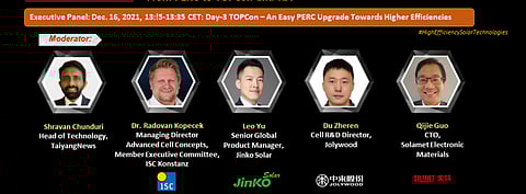 Day3 of High Efficiency Solar Technologies Conference: On Dec. 16, Day 3 of TaiyangNews Conference on High Efficiency Solar Technologies, the event will focus on TOPCon. It will have presentations from Dr Radovan Kopecek from ISC Konstanz, Leo Yu from Jinko Solar, Sheng He from Astronergy, Jia Chen from Jolywood, Laurent Clochard from Nines PV and Qijie Guo from Solamet. Also, TaiyangNews will summarize the results of its new TopCon Solar Technology 2021 Report. Do join. For Free Registration, click here.