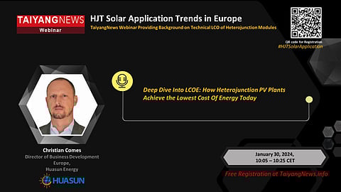 TaiyangNews Special Webinar on January 30, 2024: TaiyangNews will be hosting a special webinar on HJT Technology Updates and Market Opportunities in Europe, scheduled to take place on January 30, 2024, from 10:00 to 11:00 CET.