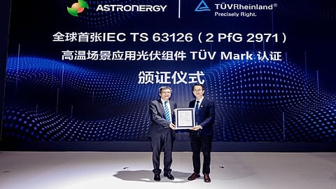 3 TÜV Rheinland certificates for Astronergy's ASTRO N series: Chint Group subsidiary Astronergy has announced that its ASTRO N series solar modules have received 3 world-first IEC TS 63126:2020 certificates from TÜV Rheinland at the SNEC PV Power Expo. These certificates include the IEC TS 63126 photovoltaic module certificate, PV junction box certificate, and PV module connector certificate. The IEC TS 63126:2020 standard, formulated by the International Electrotechnical Commission (IEC), focuses on testing PV modules and components for extended use in high-temperature environments. This new standard complements the existing IEC 61730-2 and IEC 61215 standards, enhancing the reliability and durability of PV modules in extreme conditions. These TÜV Rheinland certifications confirmed that Astronergy's TOPCon products meet stringent requirements, demonstrating high reliability and stability. These certifications validate the efficiency and stability of Astronergy's n-type TOPCon PV modules, making them suitable for use in diverse and challenging environments, such as deserts and high-altitude areas with extreme solar radiation.