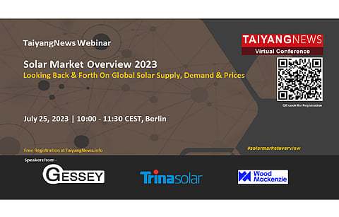 Just one day left for TaiyangNews Webinar: TaiyangNews webinar on Solar Market Overview 2023 – Looking Back & Forth On Global Solar Supply will take place tomorrow (25 July) from 10:00-11:30 CEST. The webinar will have speakers from leading consultancies, solar market research firms, and stakeholders in the supply chain, who will analyze today's situation and discuss what to expect in the solar sector in the coming months. To join this 90- minutes webinar discussing solar demand, supply and prices, do register for free now by clicking here.