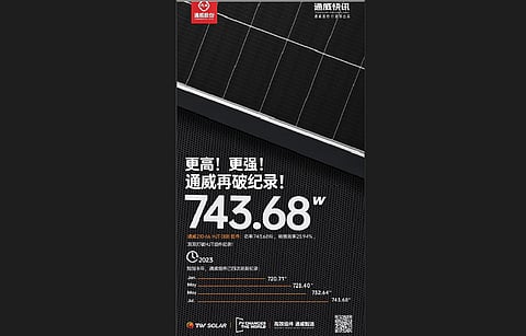 Tongwei HJT module power record: Over a WeChat communication, integrated solar PV manufacturer from China, Tongwei Solar said that the front power of its 210-66 HJT module has touched 743.68 W, and the module efficiency was at 23.94%. Breaking the HJT module power record for the fourth time this year, Tongwei credits its strong technology research and development for this feat. Meanwhile, Tongwei Pengshan facility had produced its first solar cell (see China Solar PV News Snippets). TaiyangNews recently talked to Tongwei CTO Guoqiang Xing about the company's solar module strategy (see From 14 To 80 GW Solar Module Capacity In About 1 Year).