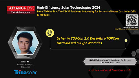 Part 2 of the Conference will be held on December 10 & 11, 2024. For agenda & free registration, please click: https://taiyangnews.info/our-events/dec-23-1011-2024-high-efficiency-solar-technologies-2024