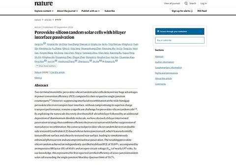 LONGi’s paper on silicon-perovskite tandem cells in Nature