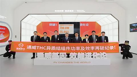 Leading integrated PV manufacturer Tongwei’s Photovoltaic Technology Center has announced that its THC-G12 heterojunction (HJT) module has achieved a TÜV-verified maximum power output of 790.8 W. Tongwei says that this is its 11th HJT power record since 2023, surpassing its recent record of 783.2 W in February 2024 record (see China Solar PV News Snippets).