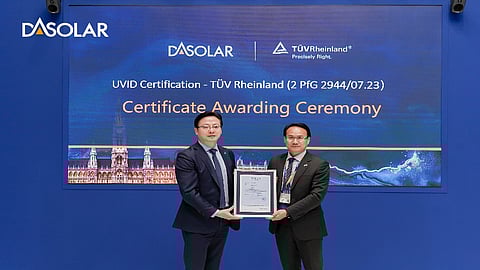 At Intersolar Europe 2025, DAS Solar received the industry's first UVID certification from TÜV Rheinland, recognizing its n-type TOPCon modules' exceptional resistance to ultraviolet-induced degradation (UVID). DAS Solar's approach includes optimized passivation layer designs and UV-conversion encapsulation films, effectively reducing UV stress on cells.