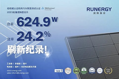 Runergy’s 2278 ×1134 mm n-type module achieves 624.9 W
