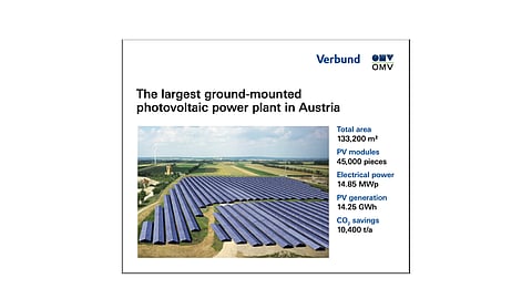 Oil and gas company OMV and hydropower producer Verbund, both headquartered in Austria, have started construction on a solar PV plant in Austria calling it the 'largest area' PV plant in the country. When complete in 2 phases, it will sport 14.85 MW capacity.