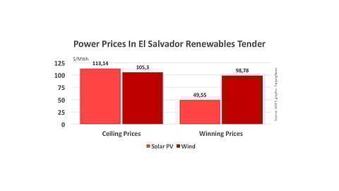 Central American country El Salvador has awarded around 120 MW of solar PV capacity in a renewables tender it floated in June 2016. Out of the total 170 MW tendered, 50 MW went to wind power.