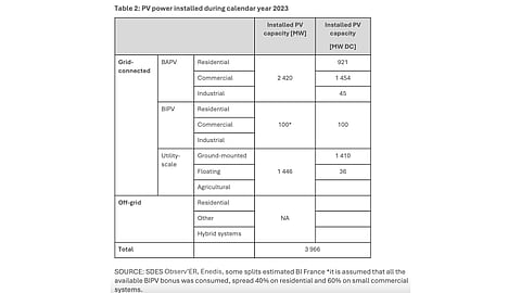 IEA-PVPS report on France: According to the National Survey Report of PV Power Applications in France 2023 of the International Energy Agency Photovoltaic Power Systems Programme (IA PVPS), the country added 4 GW DC of new PV capacity to the grid in 2023. Its cumulative installed capacity rose to 24.5 GW DC. A major growth factor was the publication of the Law for the Acceleration of Renewable Energies that introduced key regulations in 2023. This made it mandatory for solar installations on buildings over 500 m², solar canopies for large car parks, enshrined a legal definition for agrivoltaics, and introduced new rules allowing PV systems on unused land near infrastructure like roads and train lines. Residential PV systems accounted for 24% of the market in 2023. Almost 40% of the new capacity installed last year was intended for self-consumption. As per the report, close to 7 GW DC of new projects entered the grid connection queue in 2023, with a growing pipeline of more than 26 GW DC awaiting connection. The report is available for free download on the IEA PVPS website.
