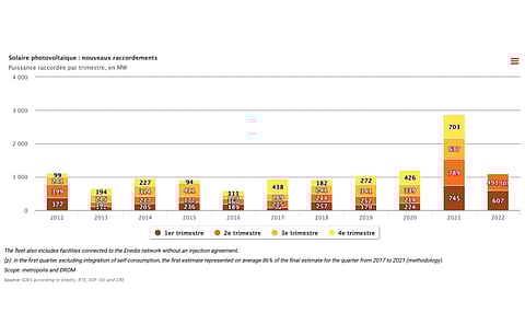 "In the second quarter of 2022, 271 GWh of photovoltaic electricity was self-consumed by producers, i.e. 4.2% of photovoltaic production for the quarter. Installations in total self-consumption produced 170 GWh, or 62% of the total self-consumed," stated SDES.