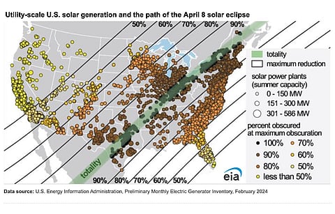 The US Energy Information Administration (EIA) says state utilities have prepared and planned for the expected solar energy loss from the April 8, 2024 full solar eclipse when Texas is likely to be hit the most as it lies in the path of totality.