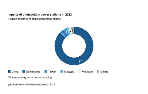 The German Federal Statistical Office (Destatis) counts the country to have imported €3.6 billion worth of solar PV cells, modules and the like in 2022, while it exported PV products for a total of €1.4 billion. China accounted for the bulk of German imports, €3.1 billion.