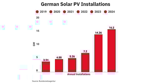 The Federal Network Agency or Bundesnetzagentur (BNetzA) of Germany says the country exited 2024 with close to 20 GW of new renewable energy capacity addition, representing a 12% increase on a year-on-year (YoY) basis with solar PV being the largest contributor at 16.2 GW.