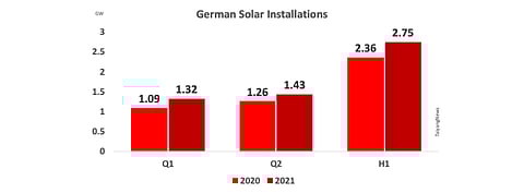 Germany exited H1/2021 with the addition of more than 2.75 GW, growing from around 2.36 GW reported in the previous year, thanks to the addition of 482.5 MW of solar power capacity in the month of June 2021.