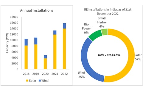 In comparison, wind sector deployments grew by 26.6% annually to 1.85 GW capacity in 2022, led by Gujarat that alone commissioned over 1.6 GW new capacity.