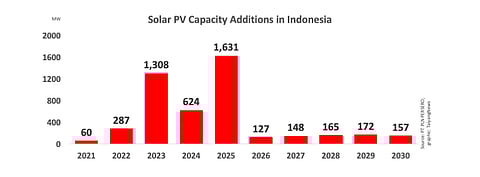 According to the plan, state-owned utility PT PLN will target to install 60 MW in 2021, and add additional capacity every year till 2030, with highest annual capacity of 1.631 GW to be deployed in 2025, post which annual capacity additions will range between 127 MW to 157 MW.