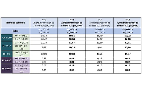 These rates are applicable for mainland France between August 1, 2022 and October 21, 2022, while for French territories not connected to the continental metropolitan electricity network known as non-interconnected zones or ZNIs, the enforcement period is between July 1, 2022 and September 30, 2022.