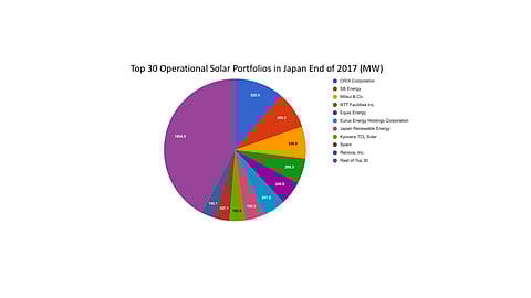 At the end of 2017, Japan's overall PV capacity was reportedly about 49 GW. Out of the top 30 operational solar portfolios at the end of 2017, Orix Corp. has maintained its top position for the second year in a row with 520 MW. It is followed by SoftBank's SB Energy with 390 MW and Mitsui & Co. with 336.6 MW. This data has been published by solar events organizer Solarplaza International BV ahead of its Solar Asset Management Asia Conference 2018, which will take place in May in Tokyo.
