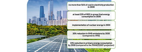 With coal as its dominating source of power generation currently, Poland aims to have a 23% share of renewable energy in the gross final energy consumption by 2030, with the share of wind and solar PV not less than 32% in electricity, 28% in heating and 14% in transport.