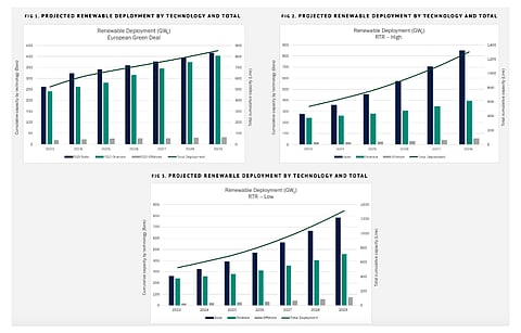 By 2028 when the Russian gas is replaced, the bloc is expected to deploy 801 GW of renewable electricity under the report's high scenario, but under low scenario by 2029 the deployment will be 854 GW.