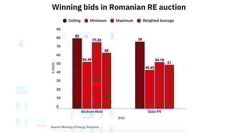 Winning bids were 20% to 30% lower for both technologies as against the cap of €82/MWh for onshore wind and €78/MWh for solar PV
