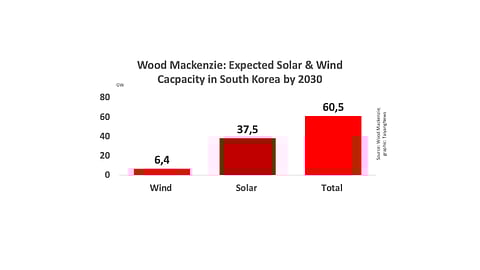 Energy and research consultancy Wood Mackenzie believes South Korea will not be able to achieve its 20% renewable energy generation target by 2030; instead it is likely to settle for about 17%. At the end of 2018, the country had a 7% share of renewables in its total power consumption.