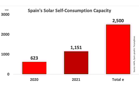 This reflects an annual growth of 85% over 623 MW installed in 2020, contributing to the current cumulative installed self-consumption capacity of Spain to around 2.5 GW.