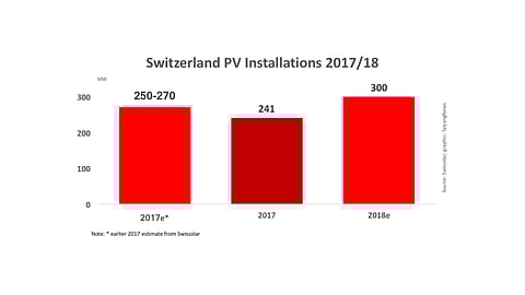 In January 2018, Swissolar said it expects 300 MW of new PV capacity to be installed in 2018.
