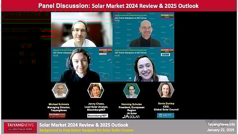 BloombergNEF’s Jenny Chase, JA Solar’s Henning Schulze, and GSC’s Sonia Dunlop discussed their perspectives on the global solar market during the recent TaiyangNews webinar on Solar Market 2024 Review & Outlook 2025