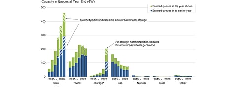 These are the findings of Lawrence Berkeley National Laboratory in its study titled Queued Up: Characteristics of Power Plants Seeking Transmission Interconnection As of the End of 2020. It includes all active projects in the generation interconnection queues through the end of 2020.