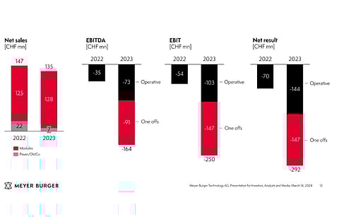 Meyer Burger shows here the key figures of its P&L 2023 which it says was impacted by extraordinary items. (Photo Credit: Meyer Burger Technology AG)