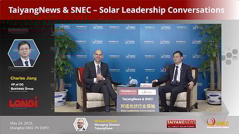 As part of TaiyangNews and SNEC-Solar Leadership Conversations at the world's largest solar show SNEC 2023 in China's Shanghai, Managing Director of TaiyangNews, Michael Schmela sat down for an exclusive interview with the Vice President of LONGi's Distributed Generation (DG) Business Group, Charles Jiang.
