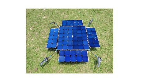 The quadcopter only works when the motors can lift the total weight. The weight of our quadcopter is about 1.3 kg, including frame, motors, and electronics. The solar module consists of solar cells, lamination, and solar frame. A suitable weight-to-power ratio of the solar module enables the solar drone to fly well. Thus, delicate design and engineering are needed.