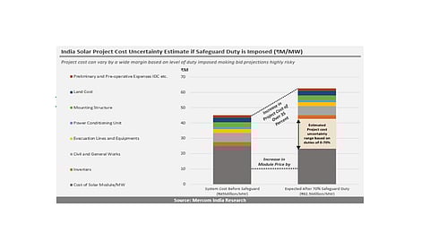"The proposed safeguard duty would immediately raise the cost of modules and the project cost depending on the level of tariff," said Raj Prabhu, CEO of Mercom Capital Group. He added, "A 70% safeguard duty could increase total project cost by over 35 percent but developers have no way of knowing what this additional cost could be so they can adjust their bids accordingly."