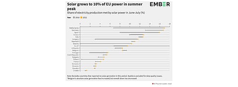 Ember said Estonia and Poland have gone from near-zero solar in 2018 to 10% and 5% respectively in June-July 2021.