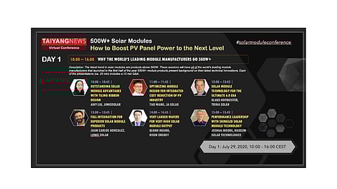 The 2nd day at TaiyangNews Virtual Conference on July 30, 2020 will be even more exciting with an executive panel from the leading 500W+ module manufacturers offering their insights into the opportunities for further cost reduction while improving the output of solar panels.