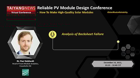Fraunhofer ISE's Head of Team Module Analytics, Dr Paul Gebhardt, said during the recent TaiyangNews Reliable PV Module Design Virtual Conference 2022, that current standard testing is not enough to ensure consistent high quality for entire lifecycle of solar modules. The industry needs better standards to avoid failures and provide good economics to customers and installers alike.