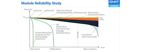 Astronergy's Product Manager Aj Hu listed all the factors that can go wrong in a module overtime bringing down its efficiency. These factors range from glass anti-reflective coating degradation, EVA discoloring, delamination of the backsheet, cracked cell isolation, contact failure of the junction box, glass breakage, loose frame, diode failure, corrosion of cell and interconnect, through its life from being produced in the fab to wearing itself out on the field.