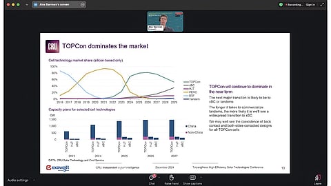 The keynote speaker on day 1 of the TaiyangNews High Efficiency Solar Technologies 2024 conference, Head of PV at CRU/Exawatt Alex Barrows, shared his thoughts on the PV cost, price and technology outlook. He reflected on the challenges the global PV industry is facing with overcapacity leading to unsustainable pricing.