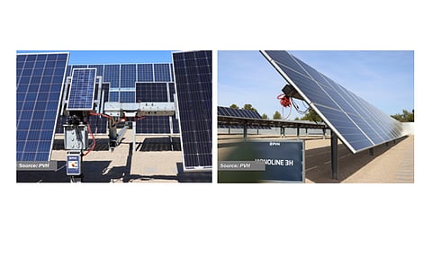 The Monoline trackers use one motor-per-row architecture and are especially suited for hilly terrain and irregular shaped plots. Monoline+ trackers come with an extraordinary high slope tolerance of 23.5% for N-S slope of approximately 20 meters each. PVH tracker systems are self-powered and equipped with backup systems to ensure stow capability in the event of power failure. All PVH trackers are tested by CPP. Based on the test results, the company does not consider 0° as the optimal stow angle. For the external rows, the optimum stow angle is 30° and for the internal rows it is 15° or 5° depending on the structure. The Axone Duo tracker uses a central driveline architecture in dual-row and is controlled by an astronomical algorithm with GPS input.