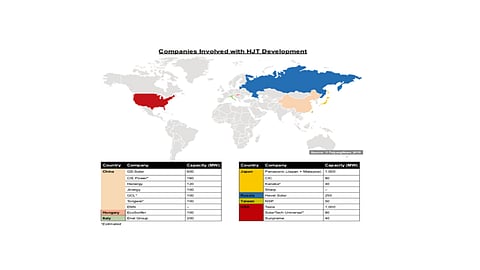 Currently, several players are active in the HJT arena representing different streams – PV producers, equipment suppliers, research institutes and material suppliers. When it comes to manufacturers, an executive from a European equipment maker, who requested anonymity, said that there are at least 20 to 30 players investigating business cases in different stages. "Some I wouldn't count as likely to really move forward, but others are more serious," said the representative, who declined to name the companies. The pack includes both existing larger players as well as startups. Approximately 18 PV producers are currently publicly known to be actively pursuing HJT (see infographic). A number of them are starting production this year, like Enel Green Power in Italy or Ecosolifer in Hungary. The latest on the list, and not yet on the map, is REC, which ordered a 600 MW cell/cell connection HJT line from Meyer Burger.