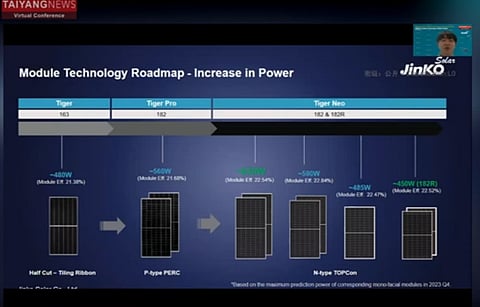 Giving some background on the development of TOPCon technology at the company, Cong said that JinkoSolar has been working on n-type since 2016 and officially launched the Tiger Neo family by the end of 2021. Then, already in 2022, the company shipped Tiger Neo n-type modules worth 10 GW along with signed orders for 30 GW. This has also led to the company shifting its focus primarily to TOPCon technology. By the end of 2023, 60% of JinkoSolar's production capacity will support n-type TOPCon, Cong underscored. The company has achieved a best TOPCon cell efficiency of 26.4%, while the mass production efficiency is at 25.4%. Having said that, the company's mainstream portfolio consists of a wide product range consisting of both n-type and p-type modules, modules based on different wafer dimensions and cell counts, and power classes to cater to different application scenarios. For utility applications, the company is promoting Tiger Neo modules with 78 cells, which have a power of 635 W. The Tiger Neo 72- cell module is a good choice for C&I rooftop due to the low voltage and flexible string setting. The high efficiency of 22.84% and power of up to 590 W also guarantee good performance during the project analysis stage. Tiger Neo 54 modules are compatible with both residential and C&I rooftop with a power of 485 W and an efficiency of 22.47%. Apart from a standard monofacial design, the Tiger Neo 54 is also available in the bifacial configuration. For applications where aesthetics are a criterion, Tiger Neo Black is also available with the highest power rating of 440 W. The Tiger Neo series also comes with high reliability, having passed 3 times the spec for standard reliability testing conditions accomplished by TUV Nord, as Cong presented at the TaiyangNews conference (see Leo Cong product manager at JinkoSolar's Presentation on The Dimension Standardization).