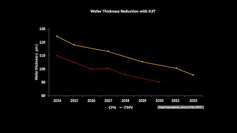 Wafer thinning is progressing rapidly in HJT, with leading manufacturers already producing 100 µm wafers and evaluating 90 µm
