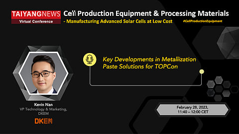 Kevin Nan was speaking at the TaiyangNews Virtual Conference on Solar Cell Production Equipment & Processing Materials that took place on 28 February 2023. With increasing interest in high-efficiency solar cell manufacturing at low cost around the world, the Conference looked into the latest developments in this segment of the solar value chain.
