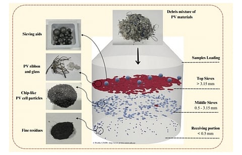 Researchers at Australia's University of New South Wales (UNSW) claim their patented sieving process can effectively extract 99% of PV cell particles during the recycling process for reuse, especially silver, at high efficiency within 5 to 15 minutes. During the tests carried out by the team, it was able to recover around 0.64 kg of silver/ton of PV waste.